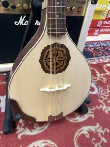 • Design: corpo a forma tipica “pera” con fondo piatto, caratteristico dei mandolini tradizionali portoghesi, per un look autentico e raffinato.