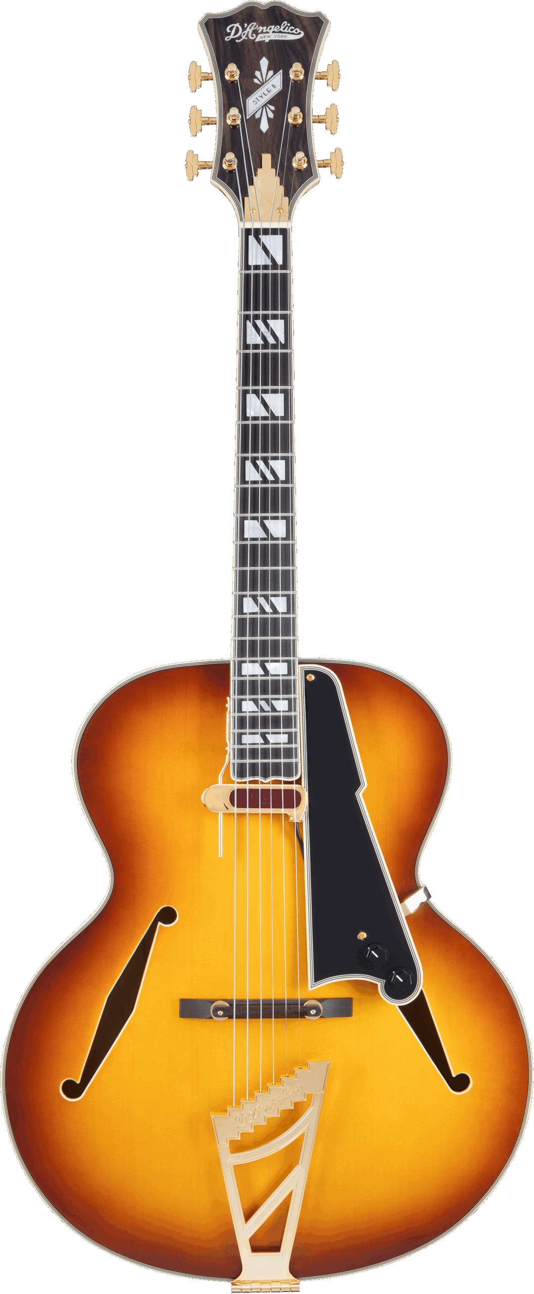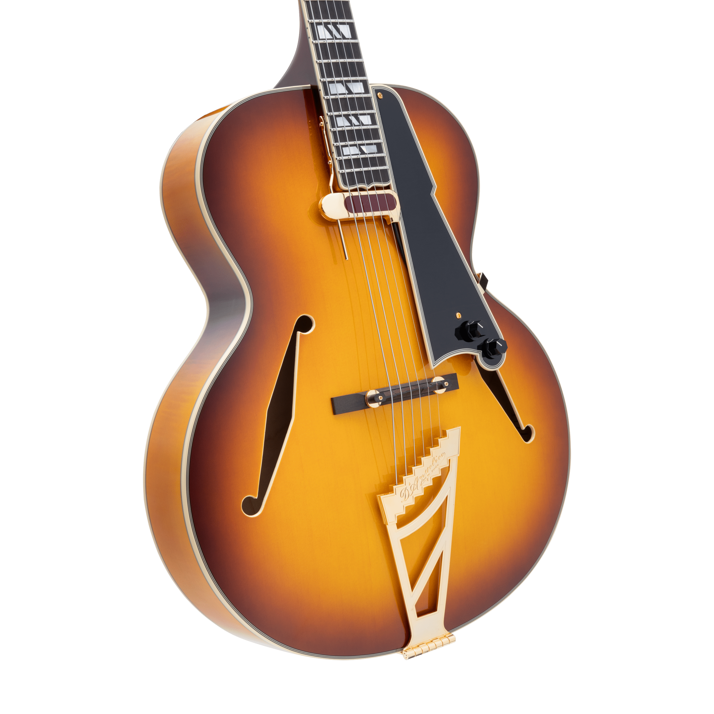 Ponte mobile in ebano e tailpiece “stairstep” D’Angelico, per un look art déco e una trasmissione sonora ottimale